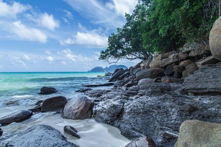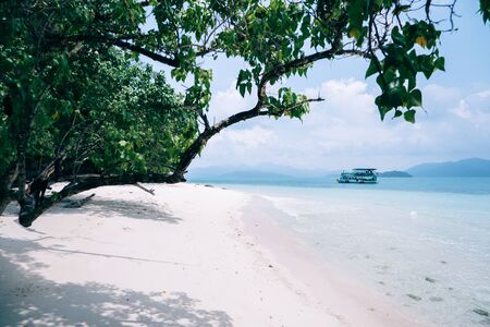Coral island, koh He, beach and boats in Phuket province, Thailand