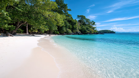 Explore a breathtaking tropical beach scene featuring soft sands, vibrant greenery, and crystal clear water, perfect for travelers seeking serenity and natural beauty.