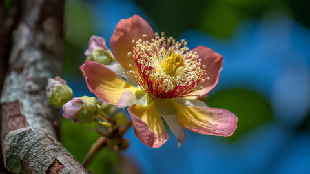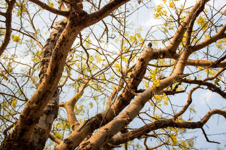Brazilian TREE SHOWING ITS UPPER TWIGS WITH THE BACKGROUND SKY. THIS TREE IS LOCATED IN THE MIDDLE OF THE AMAZON FOREST.