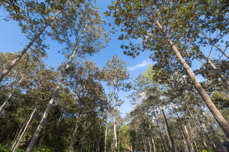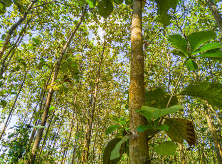 view of teak trees in the forest, teak trees in the morning, nature background, teak trees in tropical forest, nature wallpaper, teak tree of life