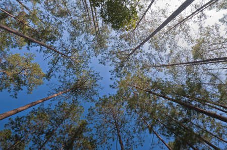 Tree from bottom view, forest and carbon reduction concept for sustainable environment, forest and nature background
