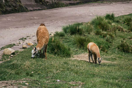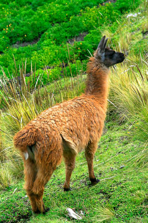 Llamas, native animals of the Andes of South America in Ecuador