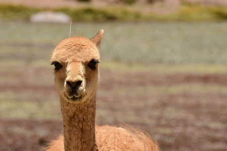 Portrait of Wild Vikunja in Atacama desert Chile South America