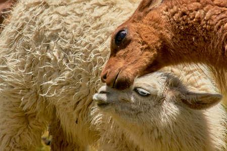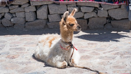 Peruvian Llama. Farm of llama,alpaca,Vicuna in Peru,South America. Andean animal.Llama is South American camelid.