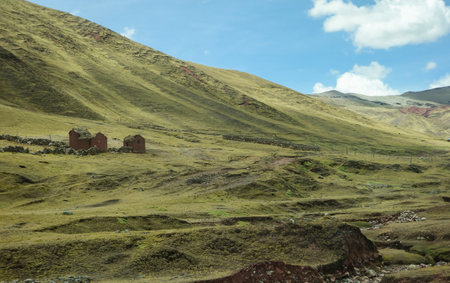 Humble houses on the way to Palccoyo rainbow mountains, in the middle of Andes valley, Peru