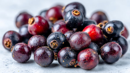 A close-up view of fresh purple berries, bursting with color and texture. Ideal for health, culinary, or food themes in marketing, recipes, and natural products.