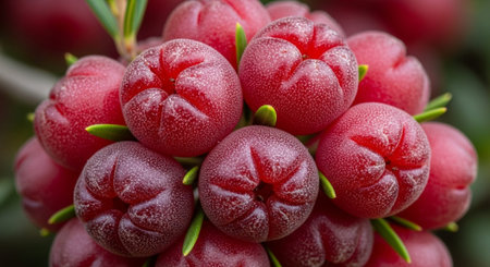Macro closeup pile of wild red Arctostaphylos manzanita berries