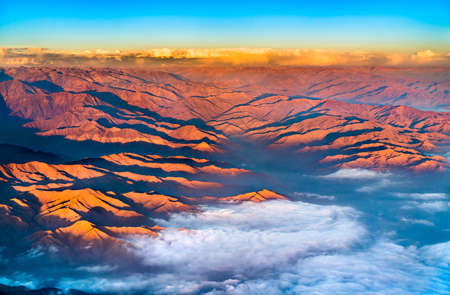 top view of Afghanistan mountains covered with snow