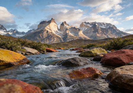 Mountain landscape with the river in Cordillera Blanca, Peru