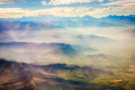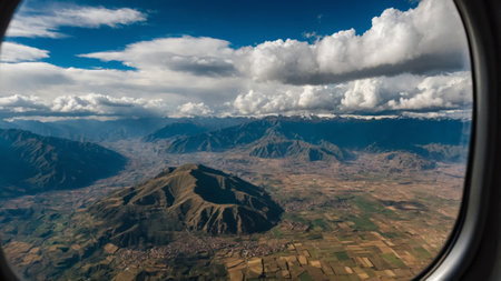 Aerial view from window plane of Andes mountains