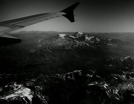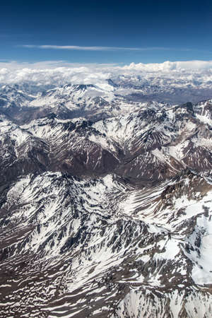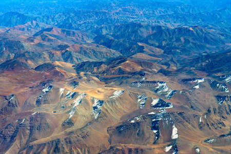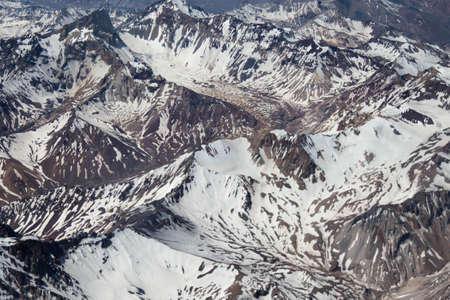 Andes Mountains (Cordillera de los Andes) viewed from an airplane window, near Santiago, Chile.