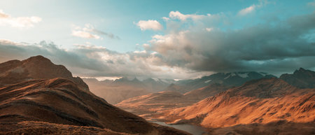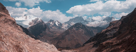 Mountain landscape with blue sky and clouds. Panoramic view