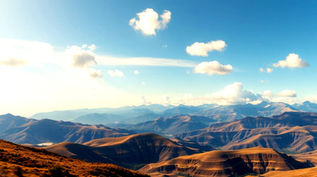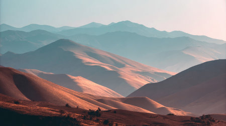 A breathtaking landscape of layered mountain ridges captures the essence of tranquility. The gentle curves and warm earth tones create a serene backdrop for exploration.