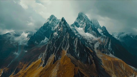 Magnificent snow-capped mountains, dreamy scenery, white and dark brown. Generative AI.
