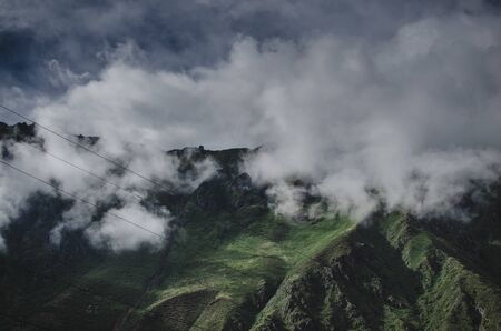 Clouds covering Andes mountains peaks from the Inca Trail. Peru. South America. No people.