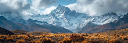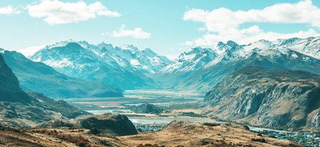 Patagonia landscape scene with big snowy andes mountains as main subject, El Chalten, Argentina