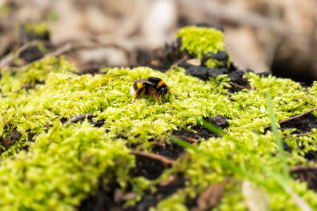 Bumblebee in the forest on the moss.
