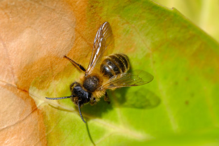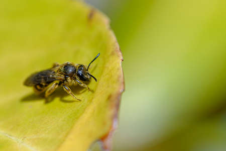 Mining bee (Andrena sp.) resting on leaf
