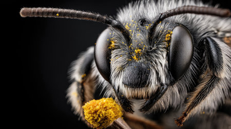 This stunning extreme close-up image shows a bee collecting pollen with incredible detail. The vibrant colors and textures capture the essence of nature's intricate design.