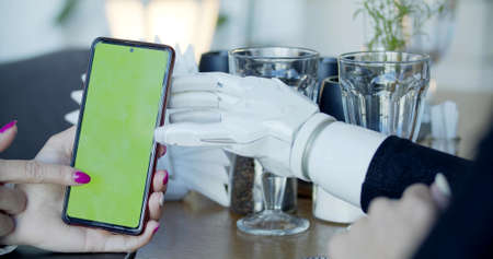 Photo of a phone and hand prosthesis