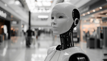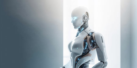AI Generated. Futuristic humanoid robot with sleek design and advanced technology in a modern environment