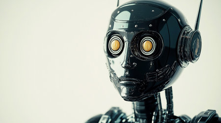 Close up shot capturing a contemporary robot with bright led eyes flashing in detail