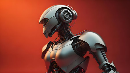 Cyborg on red background with copy space. generative ai