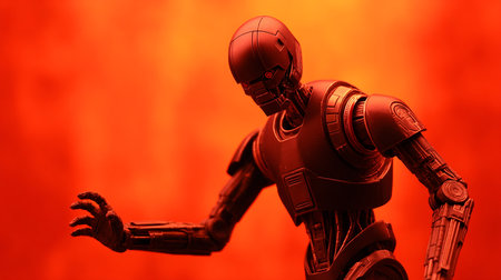 Robot, mechanical, evolving from clunky to sleek design, illustrating the shift from practical effects to CGI for futuristic characters in film, showcasing realism and creativity Realistic, Spotlight, HDR, Silhouette shot