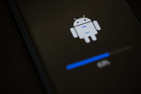siegen, north rhine westphalia / germany - 02 06 2021: a smartphone performing an android update