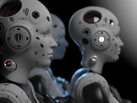 3D rendering of a group of robot cyborgs in action
