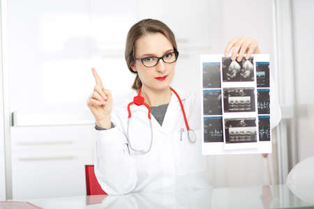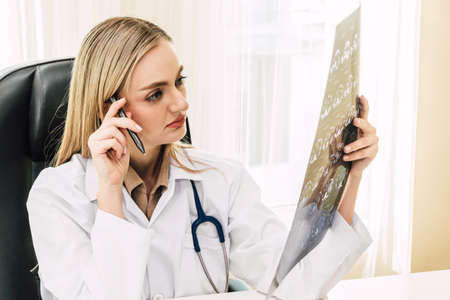 Female doctor looking at x-ray photo in hospital.healthcare and medicine