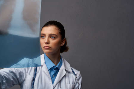 female doctor in white coat diagnostics x-ray hospital professional
