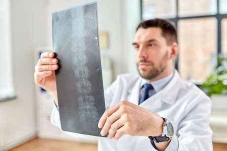 male doctor with x-ray of spine at hospital