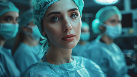 Medical professionals performing surgery in contemporary hospital operating room