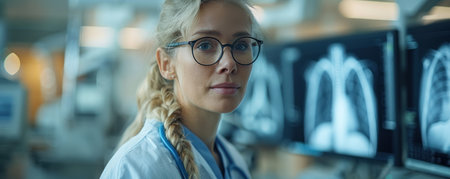 Radiologist working on lung growth visualization, healthcare tech scene