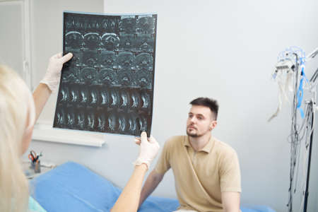patient examines the x-ray and mri in the office. Health care concept