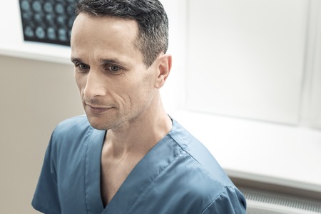 Professional doctor. Portrait of a nice smart male neurologist smiling and being in a positive mood while working in the hospital