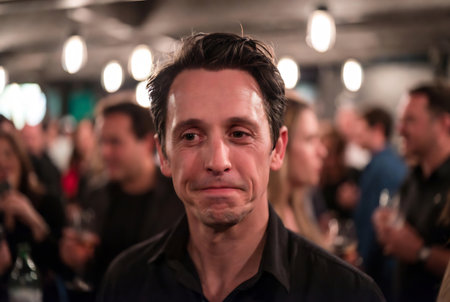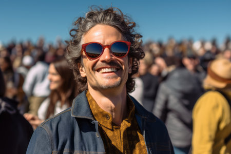 A young man in a yellow shirt stands out in a sea of eager faces at a vibrant outdoor festival, showcasing the energy and excitement of the event.