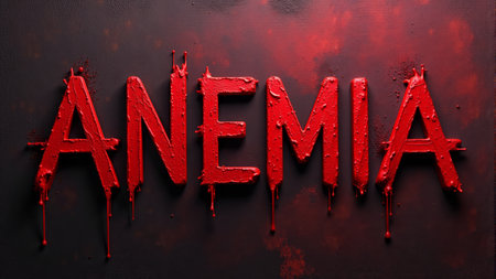 A striking visual illustrates the word Anemia in bold, dripping red letters against a dark background, evoking a sense of urgency and intrigue with an artistic flair.
