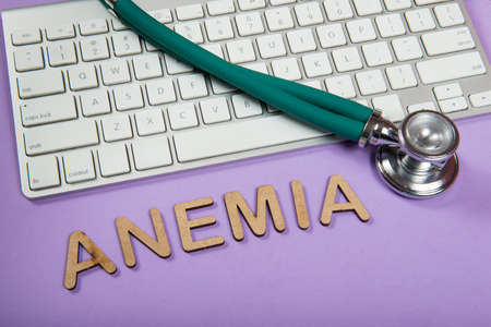 Concept of Anemia write on clipboard isolated on Wooden Table. stethoscope