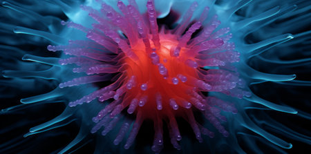 A microscopic view of sea anemones with water droplets. The concept of marine biology and ecosystems.