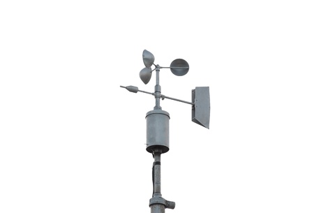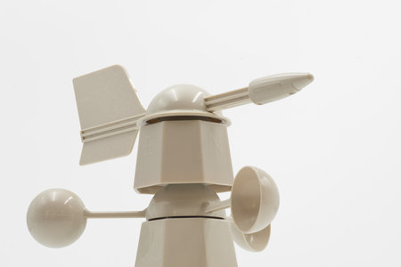Anemometer designed to measure wind speed and direction isolated on white background, for accurate meteorological data in weather monitoring station.