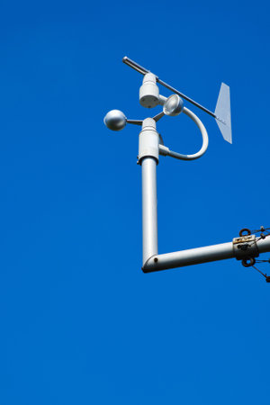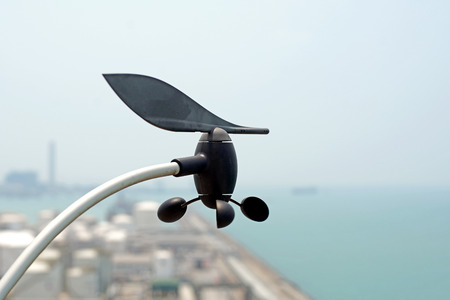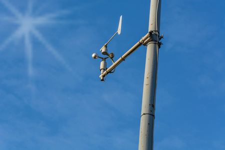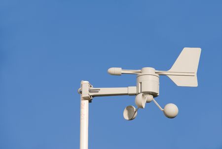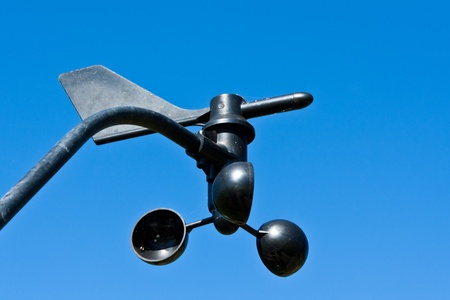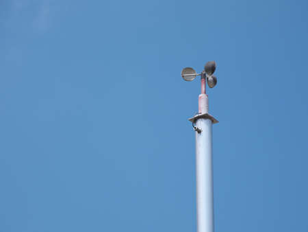 An anemometer or air speedometer on blue sky background