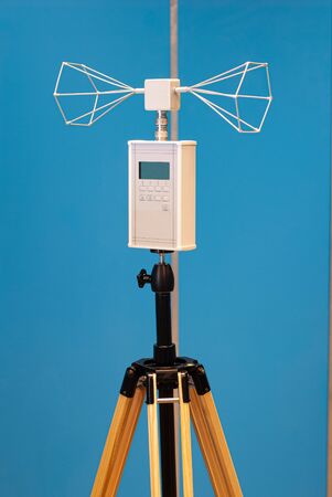 Tokyo,Japan-February 5, 2020: Anemometer or air speedometer on blue sky background