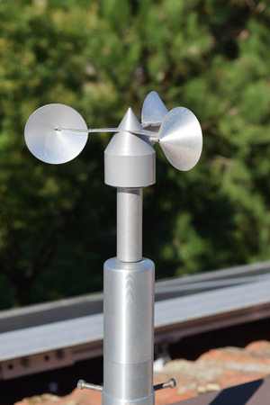 close up of aluminum anemometer on roof