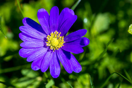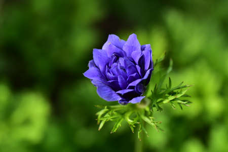 Beautiful violet blue anemone flower in the summer garden