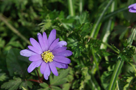 Anemone blanda, Balkan anemone, Grecian windflower or winter windflower blooming. An herbaceous tuberous perennial with purple blue flowers