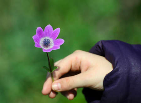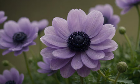 purple anemone flower in the garden, closeup shot