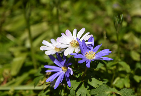 Close up of Balkan anemone (anemonoides blanda) flowers in bloom