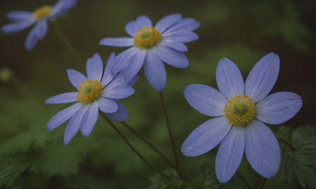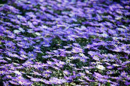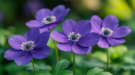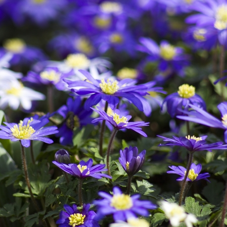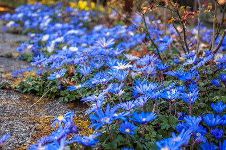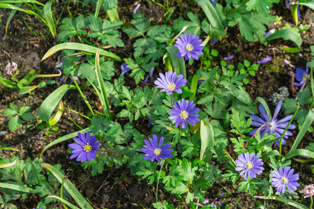 A beautiful view of the blossomed blue anemone flowers in the garden